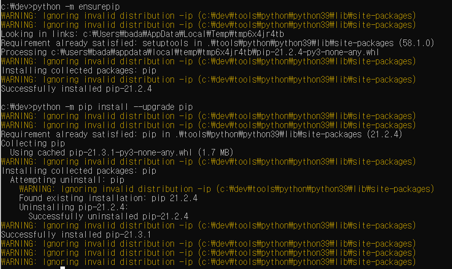WARNING: Ignoring invalid distribution -ip (c:\dev\tools\python\python39\lib\site-packages)