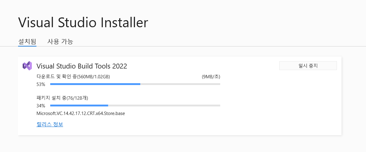 (Visual Studio Build Tools 설치 관리자 메인 화면)