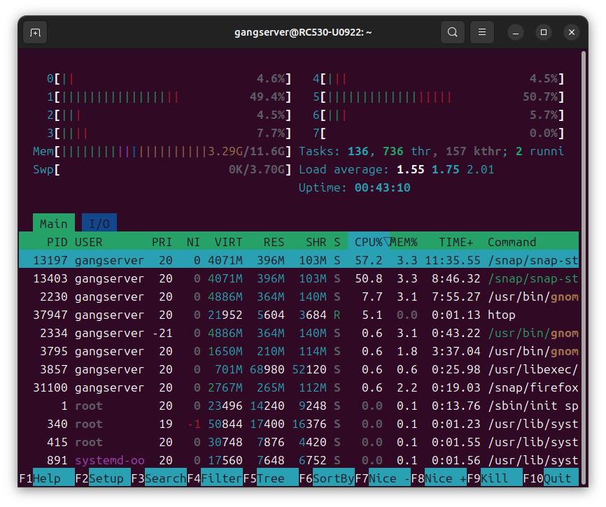 gangserver@RC530-U0922:~$ htop