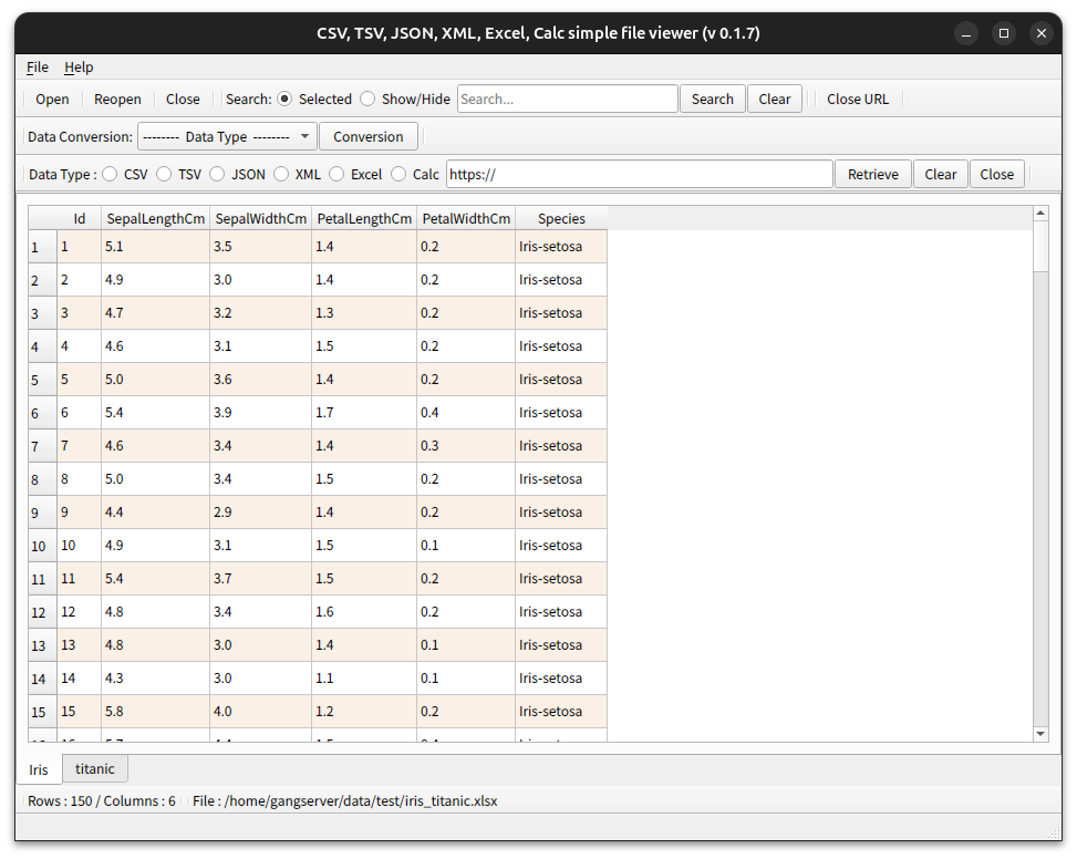 - Ubuntu 24.04 CSV(.csv), TSV(.tsv), JSON(.json), XML(.xml), Excel(.xlsx, .xls), OpenDocument Spreadsheet Calc(.ods) simple file viewer