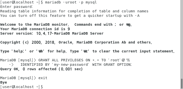 $ mariadb -u root -p mysql
