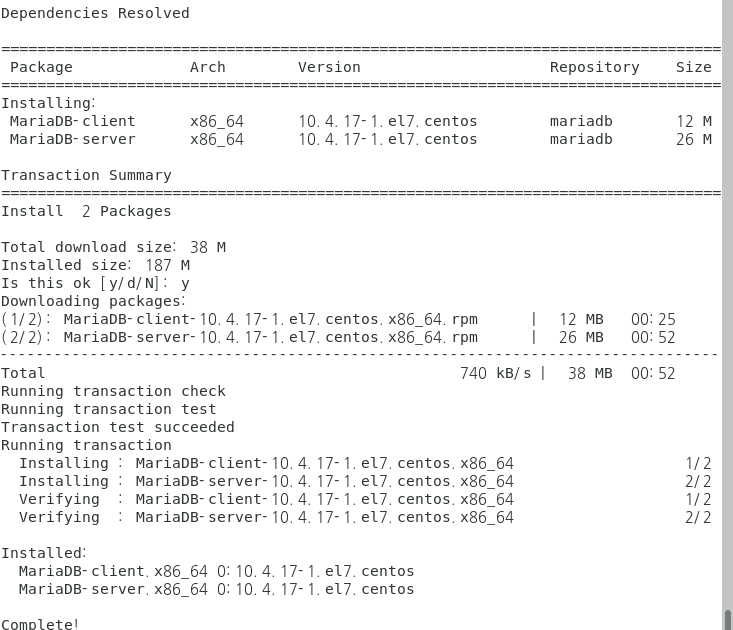 $ sudo yum install MariaDB-server MariaDB-client