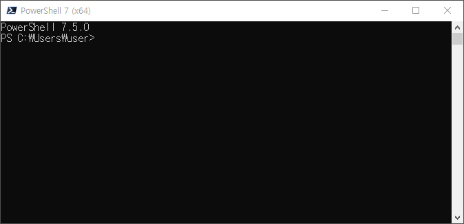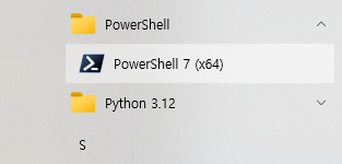 메뉴 [시작] > [PowerShell] > [PowerShell 7 (x64)] 가 보여진다.
