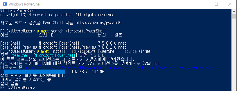 Windows에 PowerShell 최신 버전 설치 - WinGet 이용