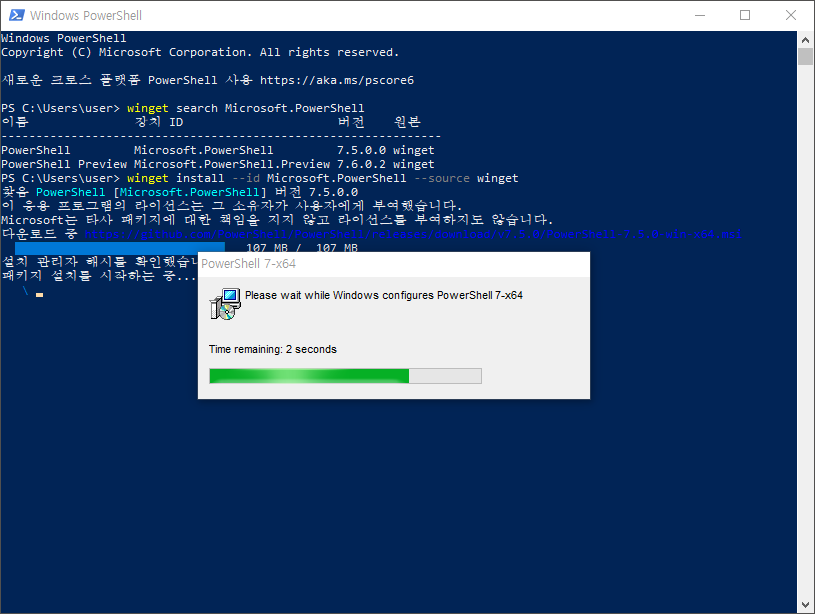 그러면 최종 버전(Microsoft.PowerShell / 7.5.0.0)과