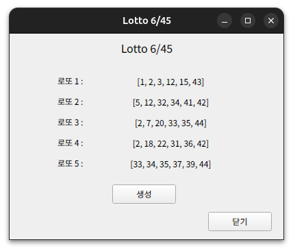 Ubuntu 24.04 로또 6/45 랜덤 생성 프로그램 (PyQt5 / pyinstaller)