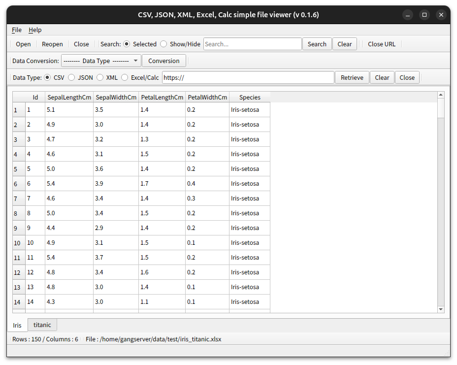 - Ubuntu 24.04 CSV(.csv), JSON(.json), XML(.xml), Excel(.xlsx, .xls), OpenDocument Spreadsheet Calc(.ods) simple file viewer
